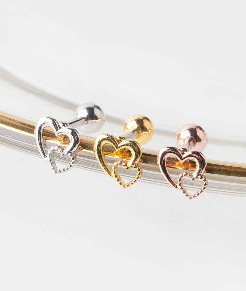 DOUBLE DOT LINE HEART BARBELL PIERCING