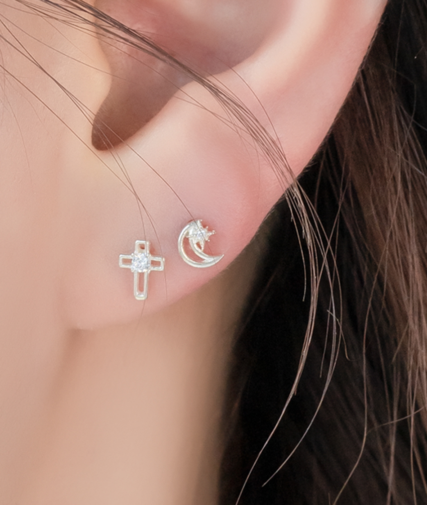 SILVER925 LINING MOON&CROSS BARBELL PIERCING