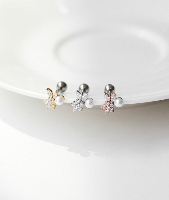 CUBIC MINI FLOWER & PEARL BARBELL