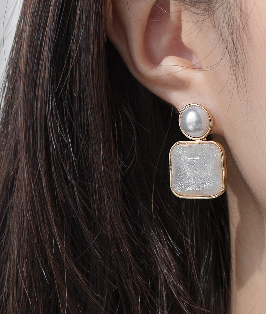 SPARKLING SQUARE PEARL EARRING