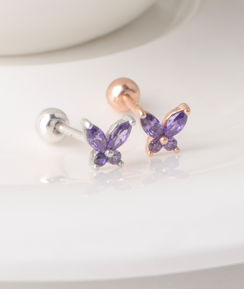 925 VIOLET BUTTERFLY BARBELL PIERCING