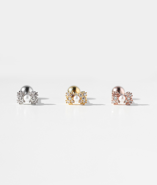 PETIT PEARL & CUBIC RIBBON BARBELL