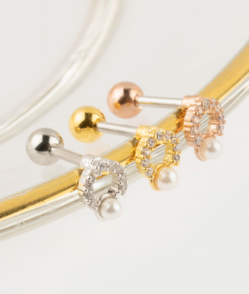 CUBIC & PEARL CIRCLE BARBELL PIERCING