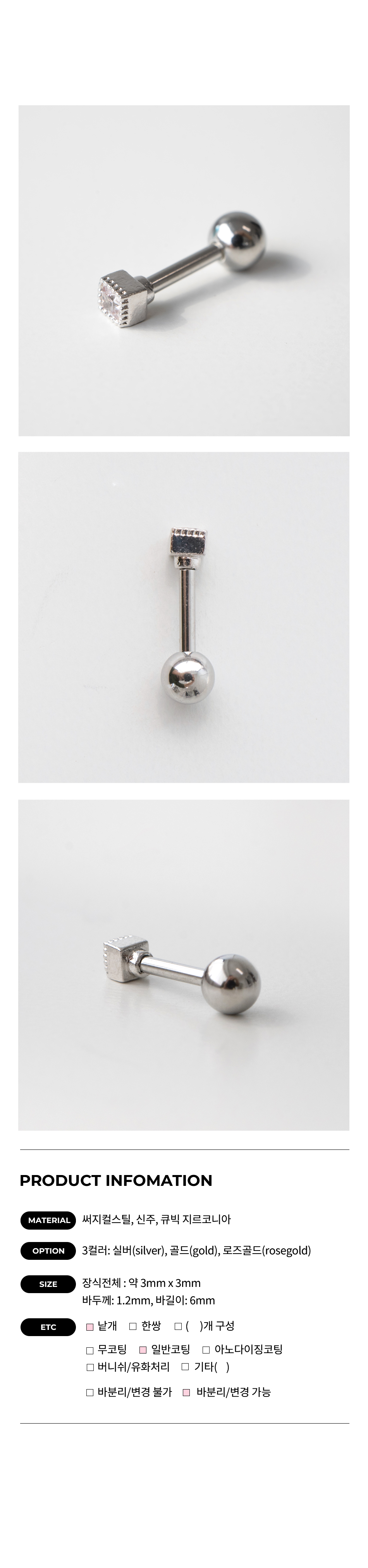 SIMPLE SQUARE CUBIC BALL PIERCING
