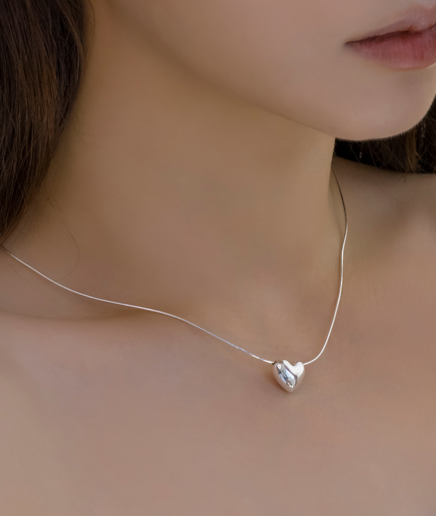 SILVER925 CHUBBY HEART PENDANT NECKLACE